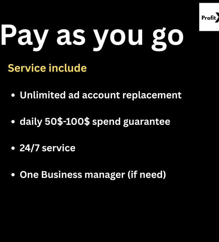 You can get high spending and trusted ad accounts with pay as you go plan and also we provide page/bm/ad accounts/profile package too